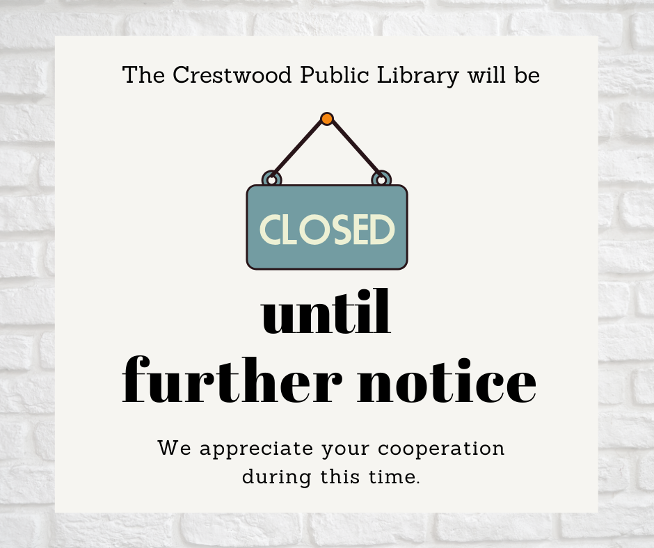 closed until further notice.png https://www.crestwoodlibrary.org/closed-until-further-notice.png/view https://www.crestwoodlibrary.org/closed-until-further-notice.png/@@images/image-1200-a42c47aca3f4119eafde86d4fc162144.png closed until further notice.png closed until further notice.png image/png Type image/png Dimension Dimension 940x788 Size File size 342.7 KB Download View full-size image